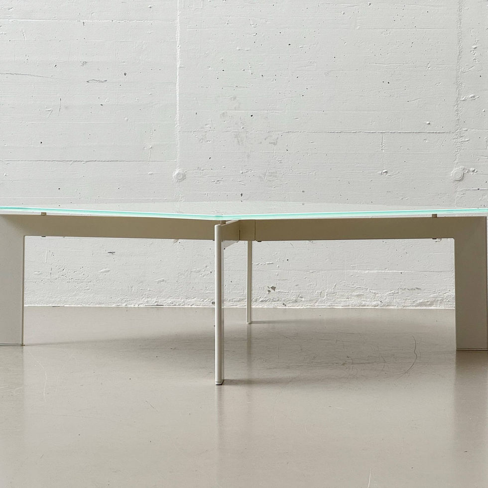 Zustand: Guter Zustand mit altersbedingten Gebrauchsspuren. Leichte Kratzer und punktuelle Abriebspuren auf der Glasplatte sowie minimale Lackspuren am Gestell, insgesamt gepflegter Gesamteindruck.