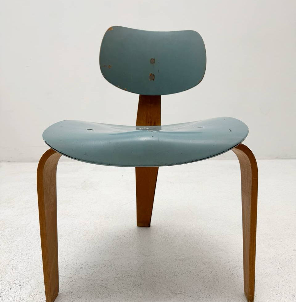 Er verbindet klare Funktionalität mit einer zeitlosen Ästhetik und spiegelt Eiermanns visionäre Herangehensweise an Möbeldesign wieder. Gefertigt aus geformtem Schichtholz, zeichnet sich der Stuhl durch seine elegante und geschwungene Form aus, die sowohl optische Leichtigkeit als auch Stabilität bietet. Die Sitzfläche und Rückenlehne sind ergonomisch gestaltet, um hohen Sitzkomfort zu gewährleisten, während die gebogenen Beine aus Schichtholz die Konstruktion harmonisch abrunden.
