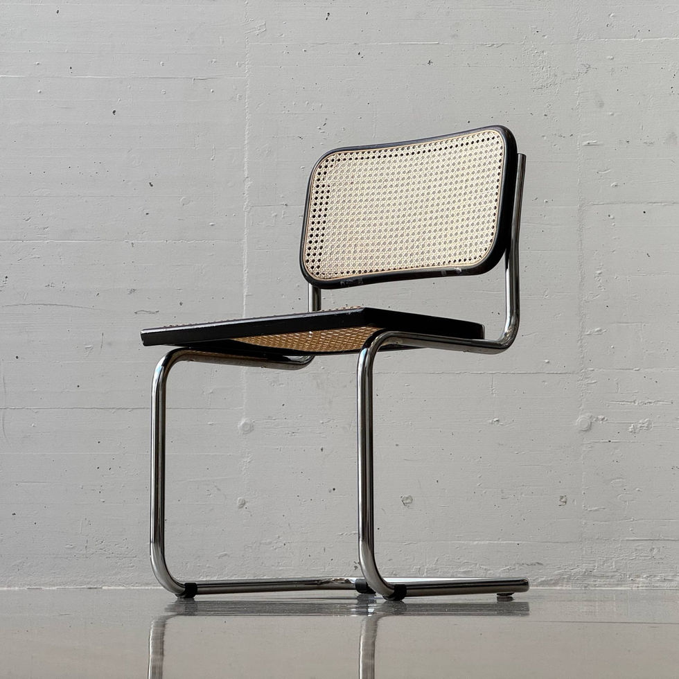 Klassischer Freischwinger im ikonischen Cesca-Stil, der die klare Bauhaus-Formensprache mit handwerklicher Leichtigkeit verbindet. Das verchromte Stahlrohrgestell sorgt für die charakteristische schwebende Optik und bietet zugleich eine angenehm federnde Sitzqualität. Sitz- und Rückenfläche sind mit Wiener Geflecht bespannt, das dem Stuhl eine warme, natürliche Ausstrahlung verleiht und zugleich für hohen Sitzkomfort sorgt. Der schwarz gefasste Holzrahmen bildet einen schönen Kontrast zum hellen Geflecht und unterstreicht die grafische Linienführung des Entwurfs. Durch seine reduzierte, zeitlose Gestaltung eignet sich der Stuhl ideal als Esszimmerstuhl, Konferenzstuhl oder stilvolle Ergänzung im Wohnbereich – ein echter Designklassiker, der sich vielseitig kombinieren lässt.