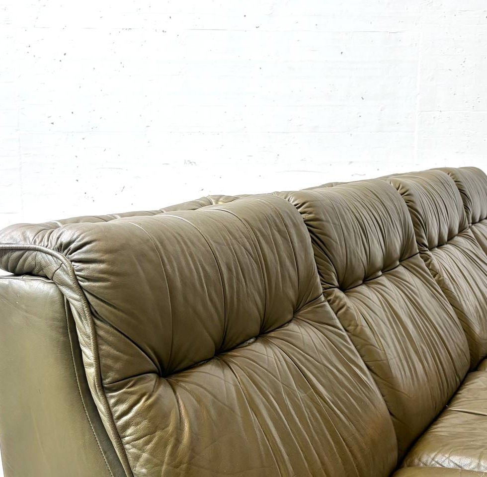 Grosszügiges Retro Ledersofa in Olivgrün, 1970er Jahre
