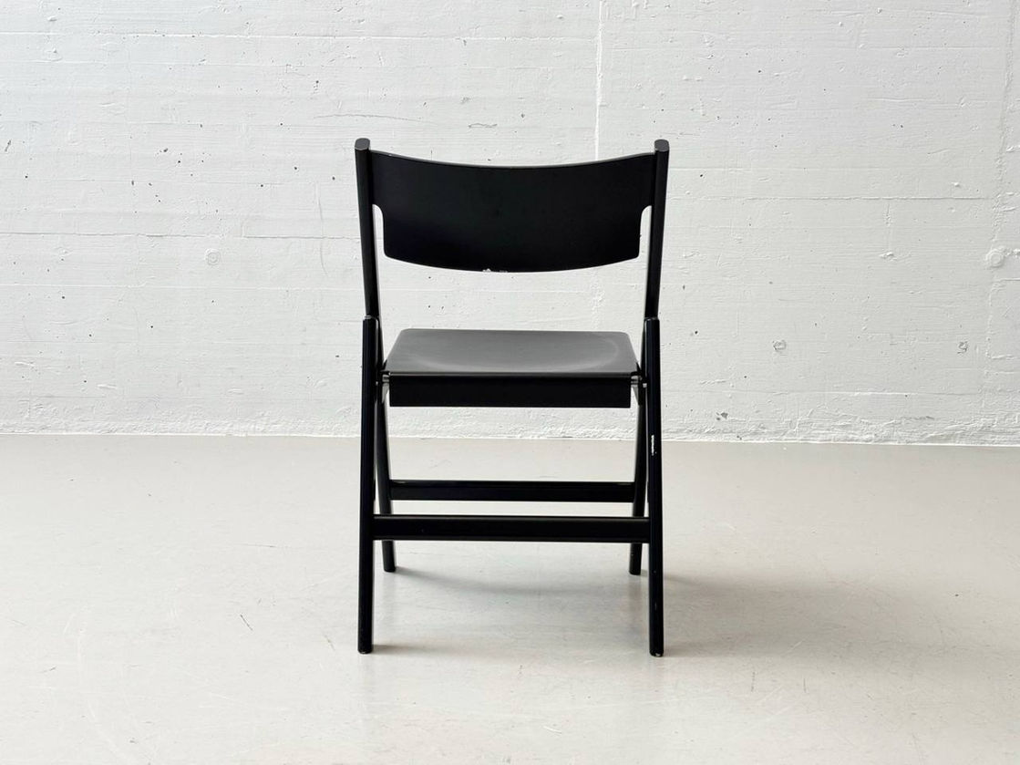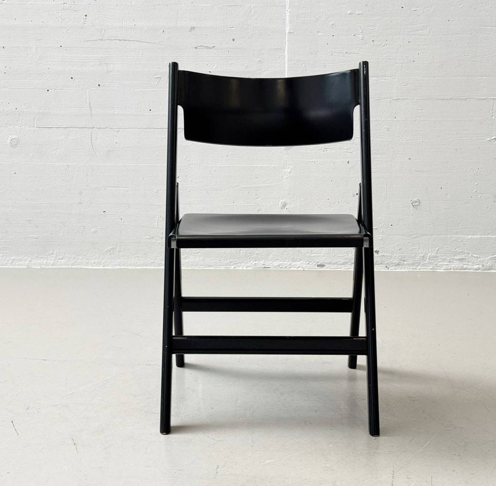 Klassische Klappstühle des Schweizer Designers Hans Eichenberger, Modell 1901 FS, entworfen 1966 und produziert von Dietiker in Stein am Rhein. Die Stühle zeigen Eichenbergers typische klare Linienführung, kombiniert mit funktionalem Purismus: ein solide ausgeführtes Gestell, eine leicht geschwungene Rückenlehne aus Formholz sowie die charakteristische Sitzkante mit seitlicher Ausnehmung zum einfachen Falten. Die Stuhle lassen sich kompakt zusammenklappen und elegant aufbewahren – ideal fur flexible Sitzanordnungen in Wohn- und Objektbereichen.