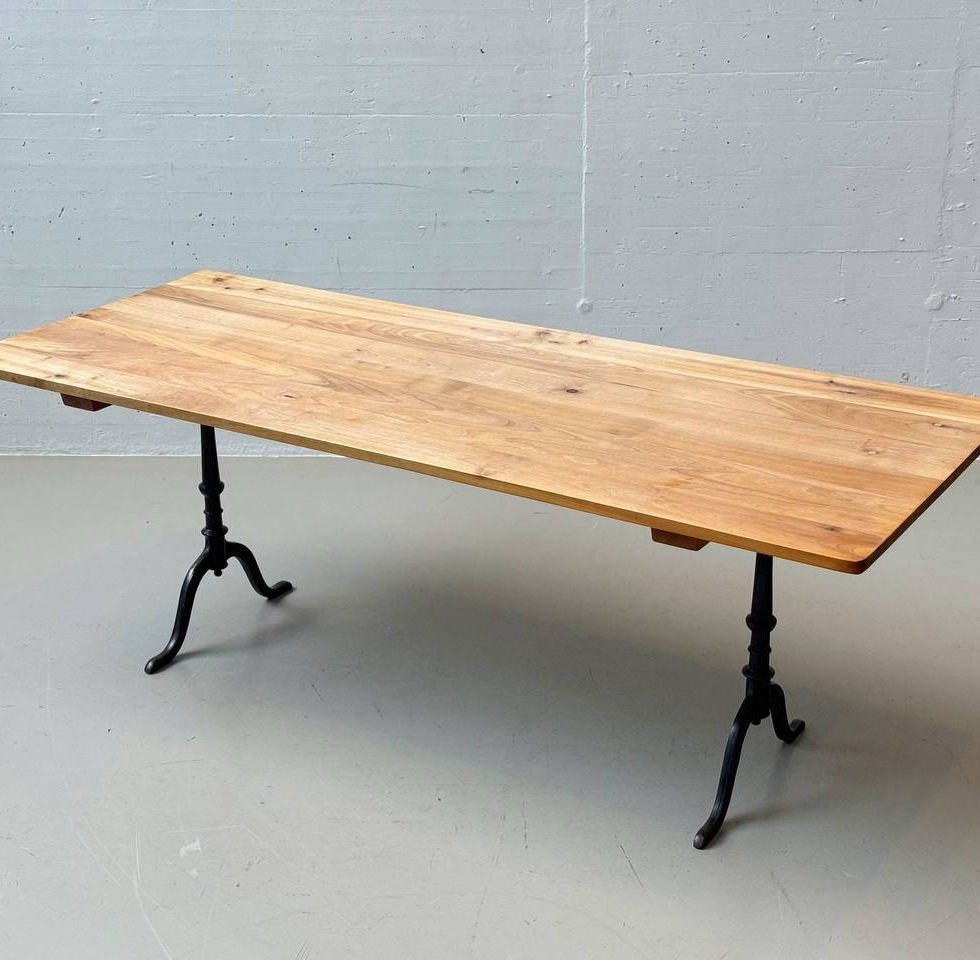 Klassischer Beizentisch aus Kirschbaumholz mit Gusseisenbeinen von Horgenglarus
