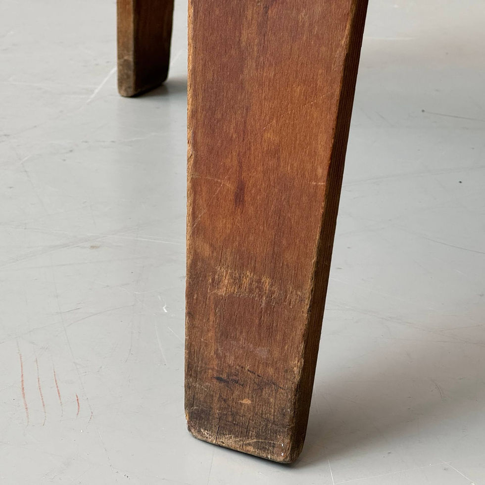 Zustand: Deutliche altersbedingte Gebrauchsspuren. Der weisse Lack mit Abplatzungen und Patina, sichtbare Kratzer und Kantenabrieb. Holzstruktur stabil, Konstruktion fest und funktional. Authentischer Vintage-Zustand mit ehrlicher Alterung.